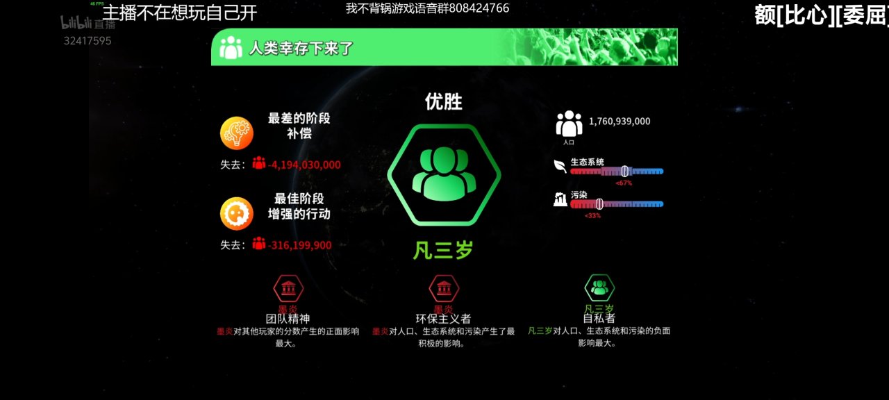 你可以把人口理解为人类团队的血量。地球如果在灾难的四个阶段结束前消耗血量,地球将获胜。如果灾难发生后人类队伍中仍有剩余血液,地球输,人类队伍中得分最高的人获胜。